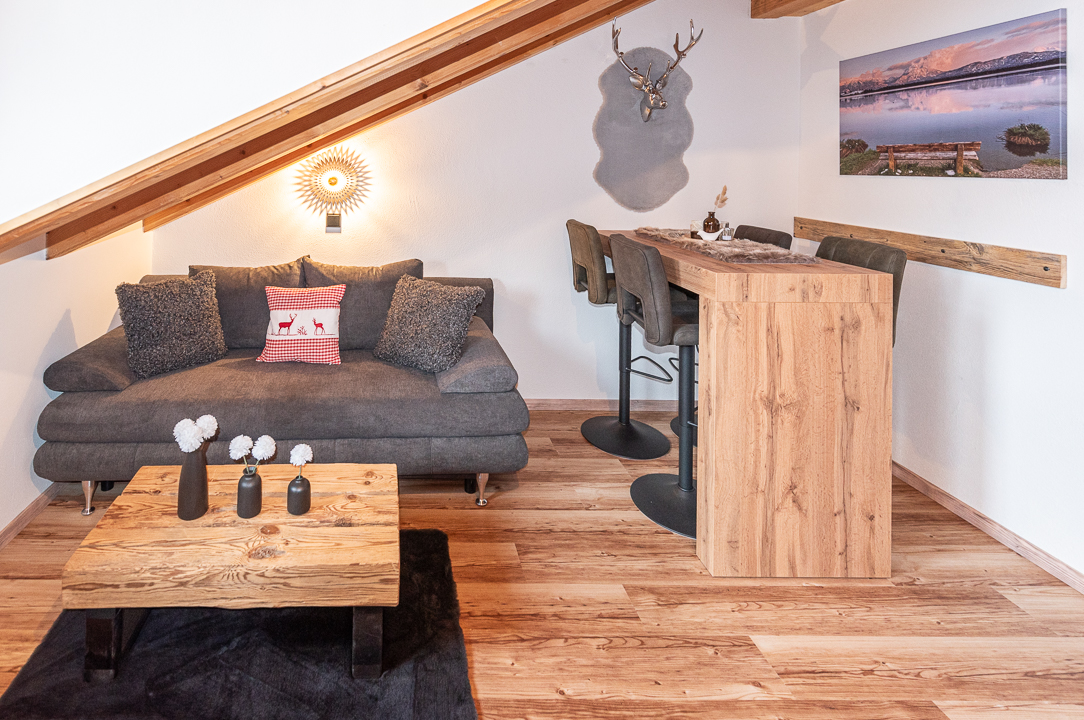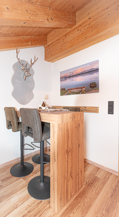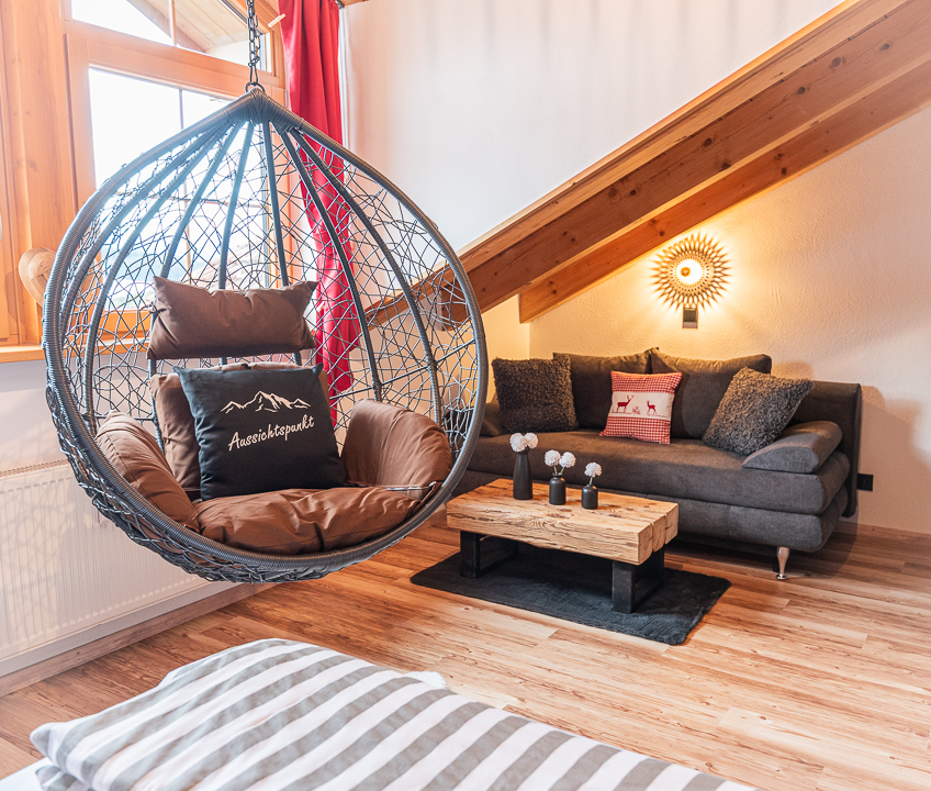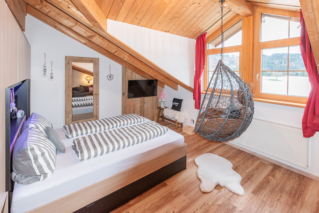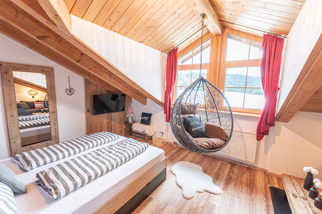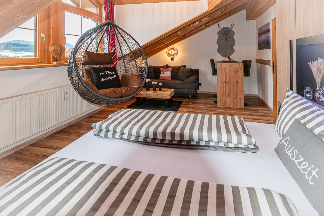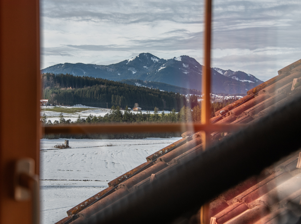 Das Bienenhaus #Bergblick bietet mit seinem alpinen Chalet-Stil einen Platz zum Wohlfühlen und Seele baumeln lassen. Der gigantische Bergblick von der Dachgaube, sowie die Nähe zu vielen Seen (z. B. Forggensee, Alatsee, Weisensee, usw.), den Bergen und zu den Schlössern sind die Gustostückchen der Ferienwohnung! Wirft man seinen Blick von der Dachgaupe geradeaus, ist ein beeindruckendes Bergmassiv zu sehen. Zusätzlich erwähnenswert, sind die unvergesslichen Sonnenuntergänge, die Sie vom Hängesessel aus bestaunen können. Werdet Gäste und genießt eine ganz besondere Zeit, hier bei uns im Bienenhaus. Fühlt euch wie Zuhause! Euer Auto könnt ihr ganz bequem auf einem der Außenstellplätze direkt vor dem Haus parken. Es fallen keine zusätzlichen Parkgebühren an. Ein Kellerraum und ein zusätzlicher Abstellraum können kostenfrei genutzt werden, um Ski, Koffer, Fahrräder etc. abzustellen. SUP Boards (mit Kanusitz), Fahrräder, Rodel, Grödel, sowie Schneeschuhe können direkt in der Unterkunft ausgeliehen werden.