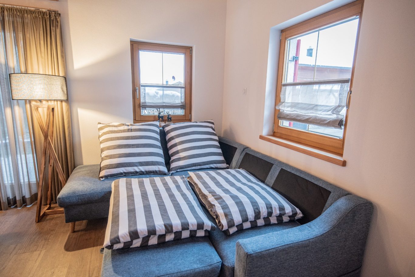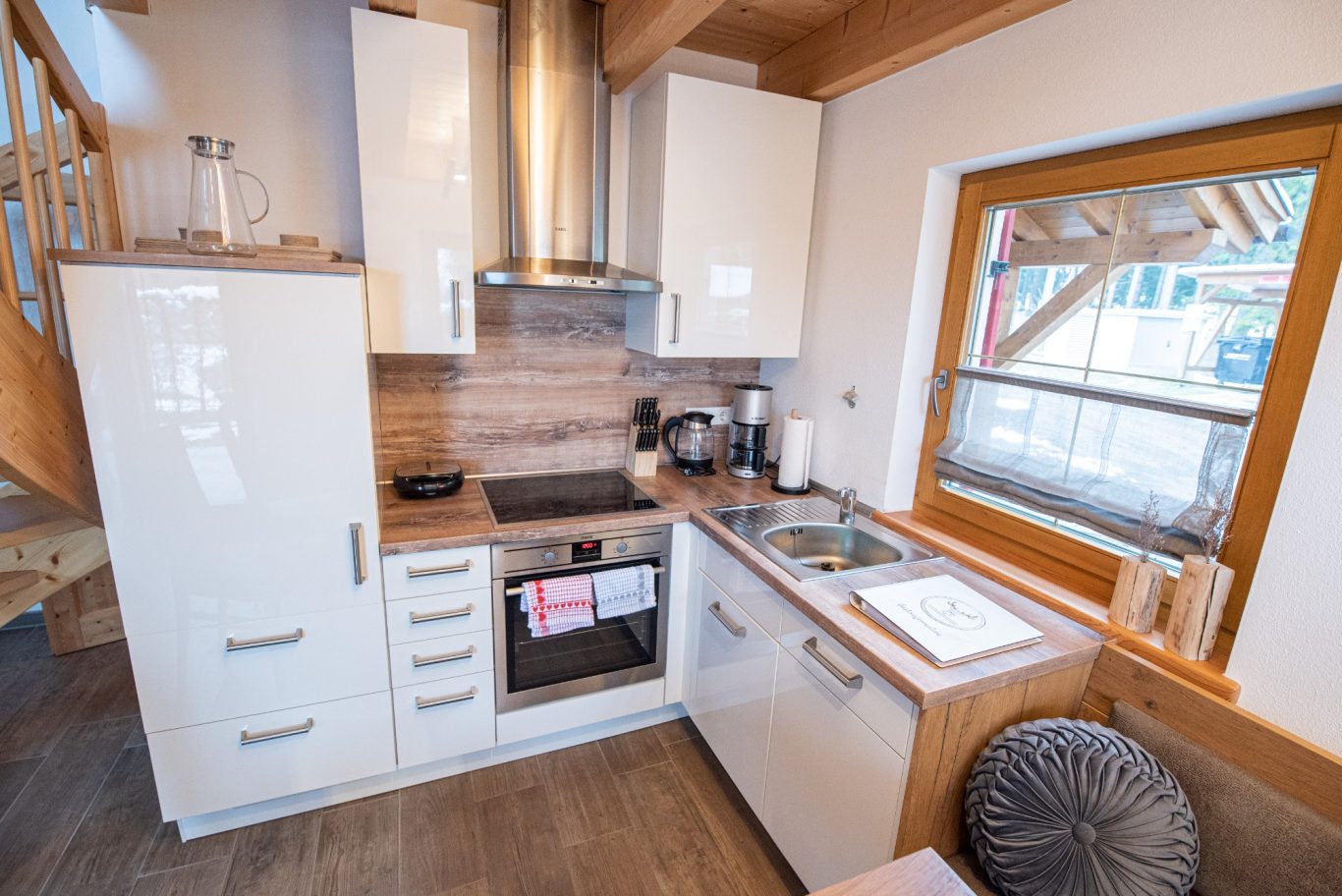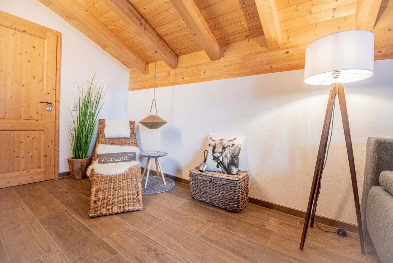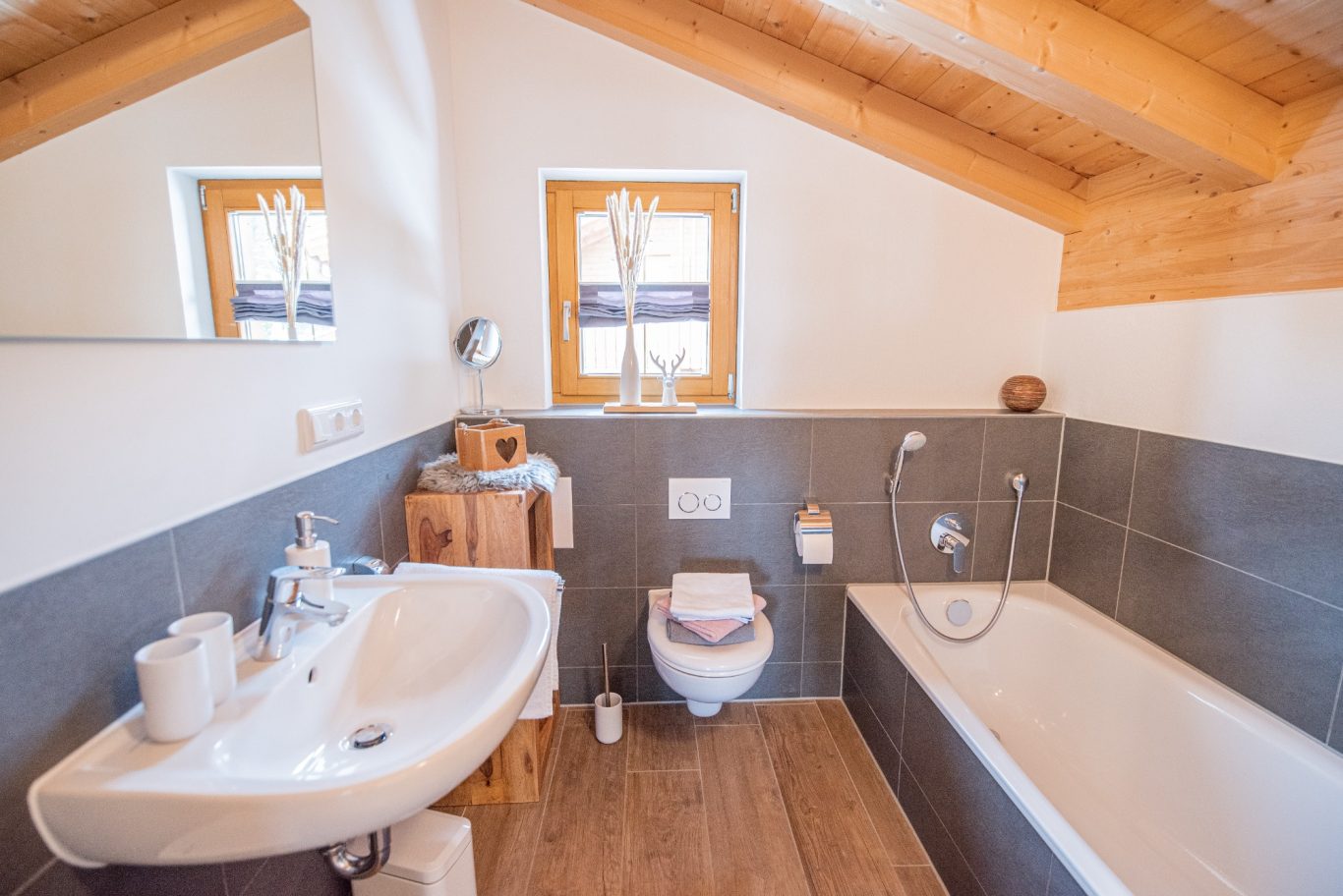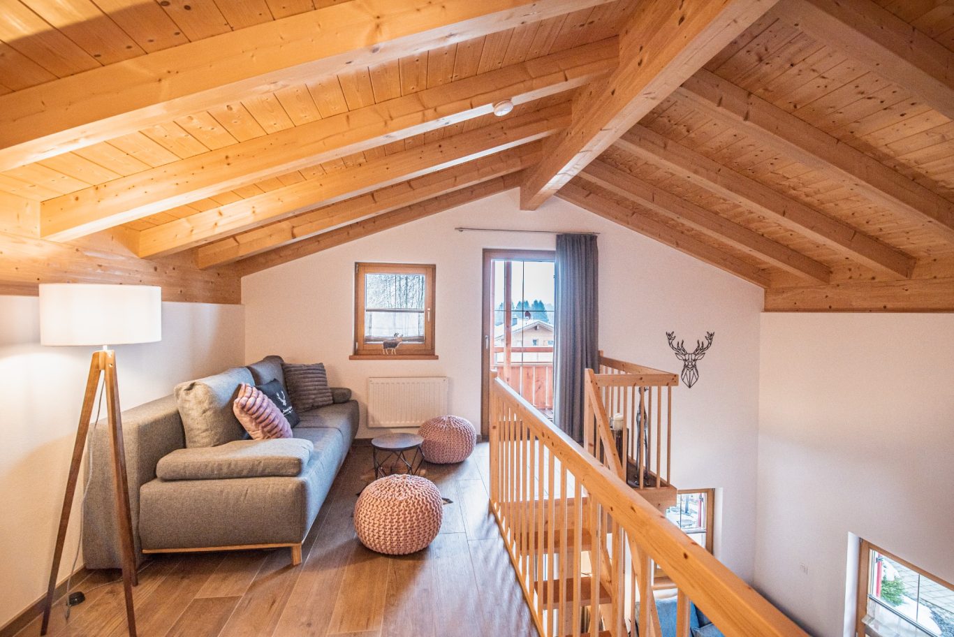Das Hirsch Chalet bietet mit seinem alpinen Chalet-Stil einen Platz zum Wohlfühlen und Seele baumeln lassen. Die Fasssauna, der gigantische Berg- bzw. Seeblick vom Balkon, sowie die unmittelbare Nähe zum Lechstau- und Baderwäldesee bzw. zu den Bergen und den Schlössern sind die Gustostückchen des Ferienhauses!